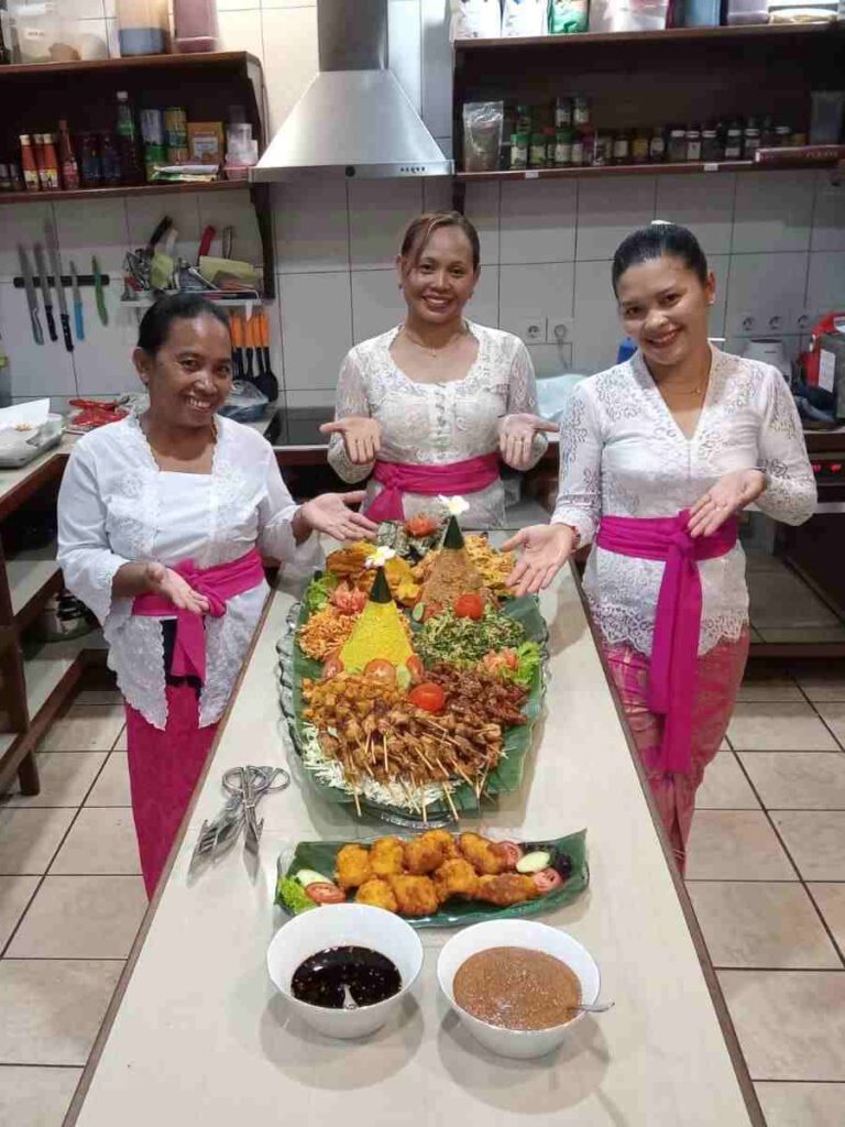 Die balinesische Küche ist würzig und vielfältig. Probieren solltest du Nasi Goreng (gebratener Reis), Satay (Fleischspieße) und das traditionelle Babi Guling (Spanferkel).