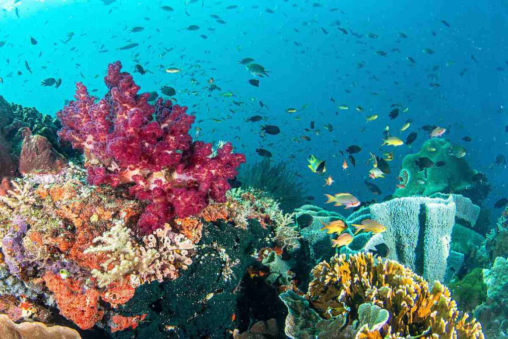 Für Taucher ist Halmahera ein wahres Juwel. Die Riffe rund um die Insel sind praktisch unberührt, und man trifft selten auf andere Taucher. Die Region liegt im Herzen des Korallendreiecks und bietet eine beeindruckende Biodiversität, die oft mit dem benachbarten Raja Ampat verglichen wird.