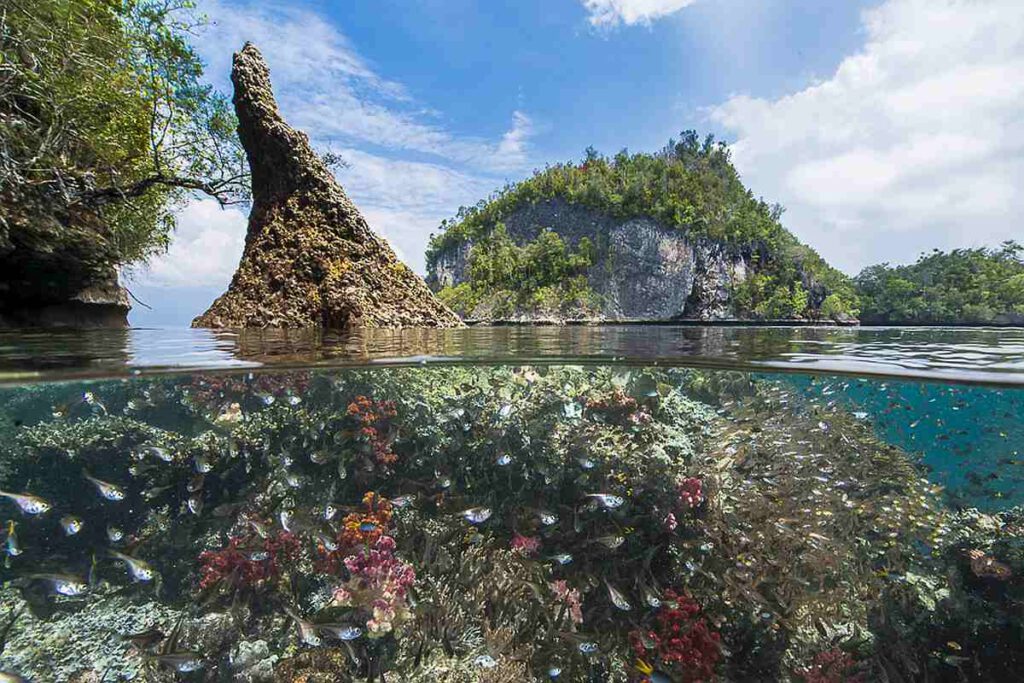 Raja Ampat, im äußersten Osten Indonesiens in Westpapua gelegen, gilt als das Herz des globalen Korallendreiecks und ist für viele Reisende und Taucher das absolute Traumziel schlechthin. Die Region besteht aus über 1.500 kleinen Inseln und bietet eine unvergleichliche Artenvielfalt sowohl über als auch unter Wasser. Das Epizentrum der marinen Artenvielfalt weltweit und ist für viele Taucher das ultimative Reiseziel. Gelegen im Herzen des Korallendreiecks, beheimatet die Region die höchste Konzentration an Fischarten, die jemals bei einem einzigen Tauchgang gezählt wurden, sowie 75 % aller bekannten Korallenarten.