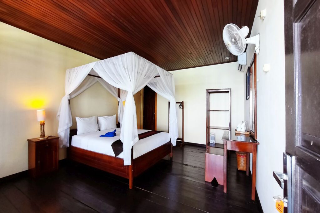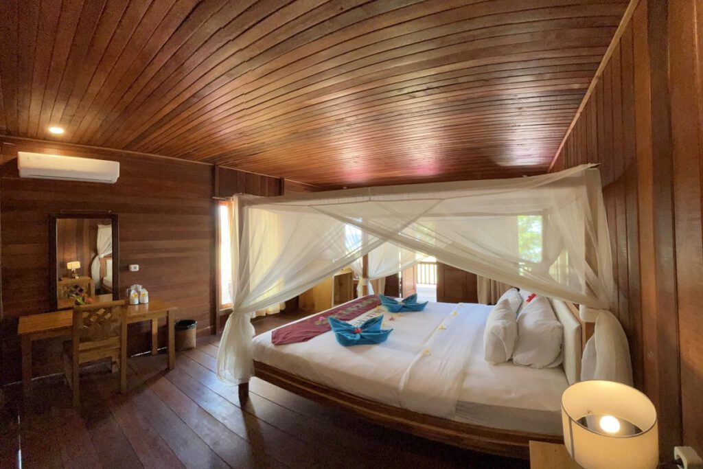 Nur wenige Schritte vom türkisfarbenen Wasser der Küste Bunakens entfernt bieten die Superior Beachfront Zimmer einen Logenplatz im Paradies. Diese geräumigen, klimatisierten Zimmer verfügen über eine private Terrasse mit Hängematte – perfekt, um den Sonnenaufgang oder die sanfte Meeresbrise zu genießen. Die aus Holz gefertigten Zimmer bieten die perfekte Kombination aus modernem Komfort und tropischem Charme.