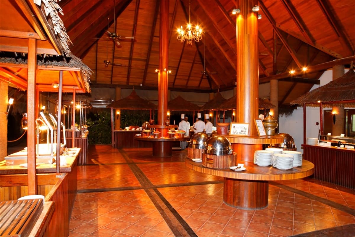 Das Medhufushi Island Resort bietet vielfältige Verpflegungsoptionen, von Bed & Breakfast bis All Inclusive, wobei das Hauptrestaurant Malafaiy mit internationalen Buffets und Live-Cooking lockt, während die Vilu Bar über der Lagune leichte Snacks und Cocktails serviert, ideal für Sonnenuntergänge, mit der Möglichkeit für romantische, private Abendessen am Strand. Gäste loben oft die gute Qualität des Essens, besonders wenn man Curry mag, aber All Inclusive empfiehlt sich, da Getränke sonst teuer sind.